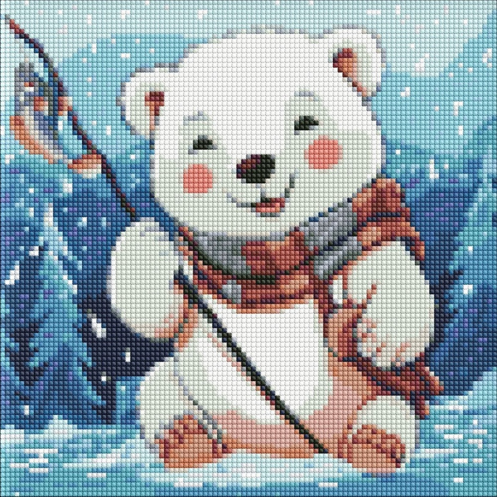 Алмазная мозаика без подрамника "Зимняя рыбалка" AMC7785 с АВ стразами 30х30 см