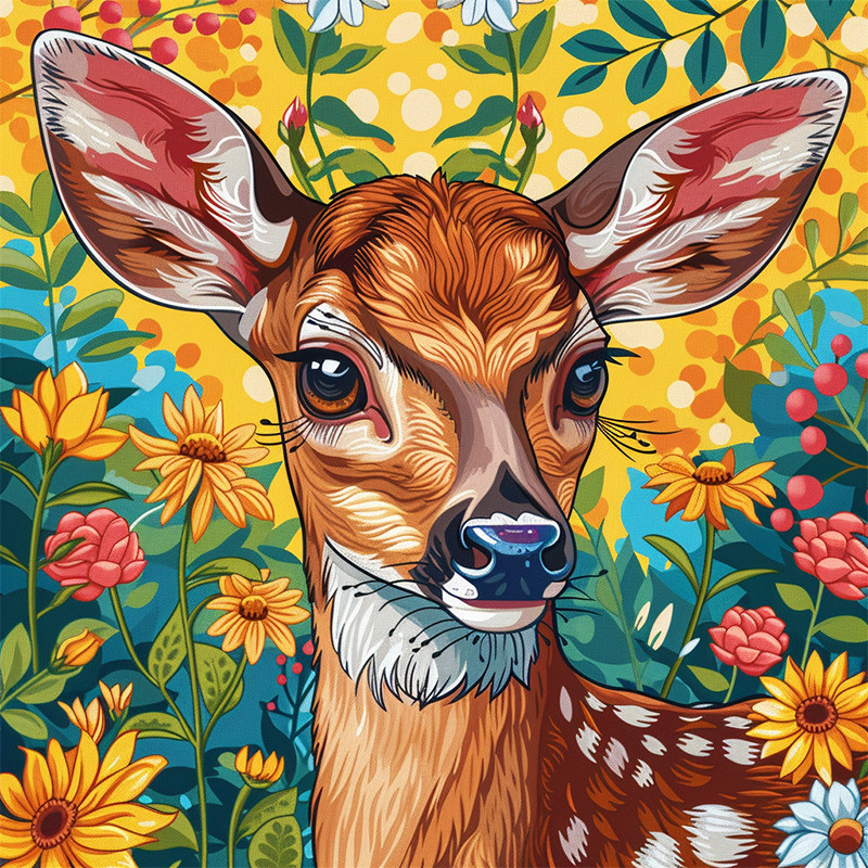 Алмазная мозаика "Олененок в цветах" BH034 неполная выкладка 25х25 см