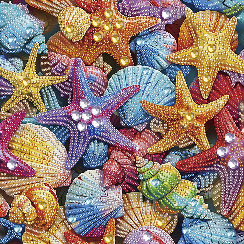 Алмазная мозаика "Цветные морские звезды" BH013 неполная выкладка 25х25 см