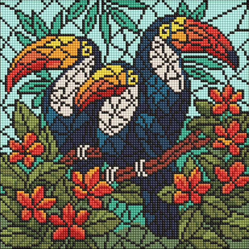 Алмазная мозаика "Витраж. Трио туканов" ©art_selena_ua AMO8345, 30х30 см