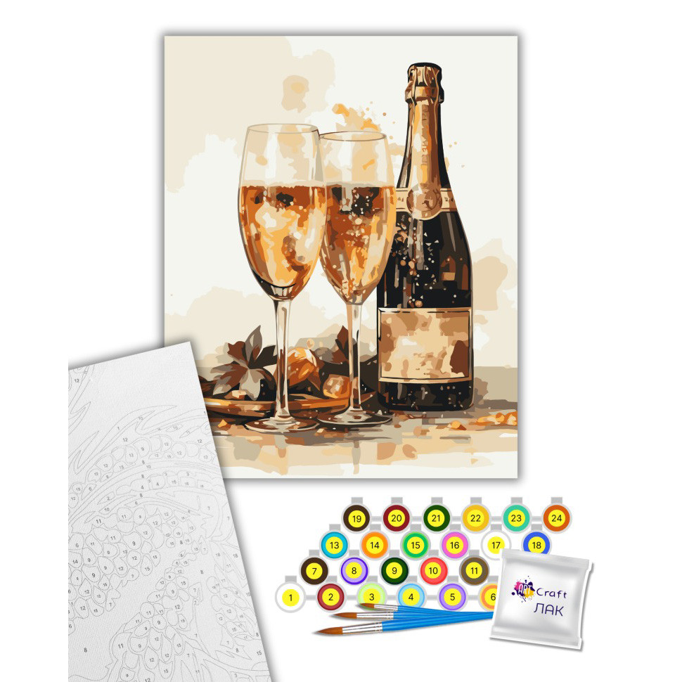 бполотно на лляній основі та дерев'яному підрамнику з нанесеною пронумерованою схемою майбутньої картини. Всі сегменти додатково пофарбовані в тон кольорів, якими буде зафарбовувати полотно