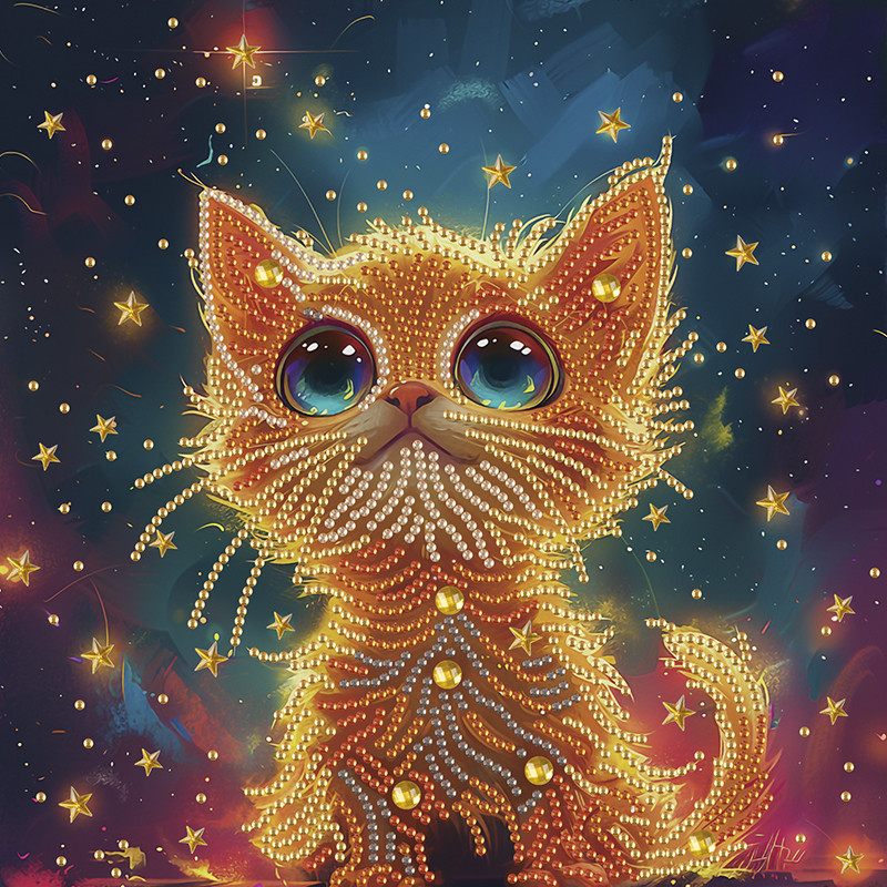 Алмазная мозаика "Голубоглазый котенок" BH009 неполная выкладка 25х25 см