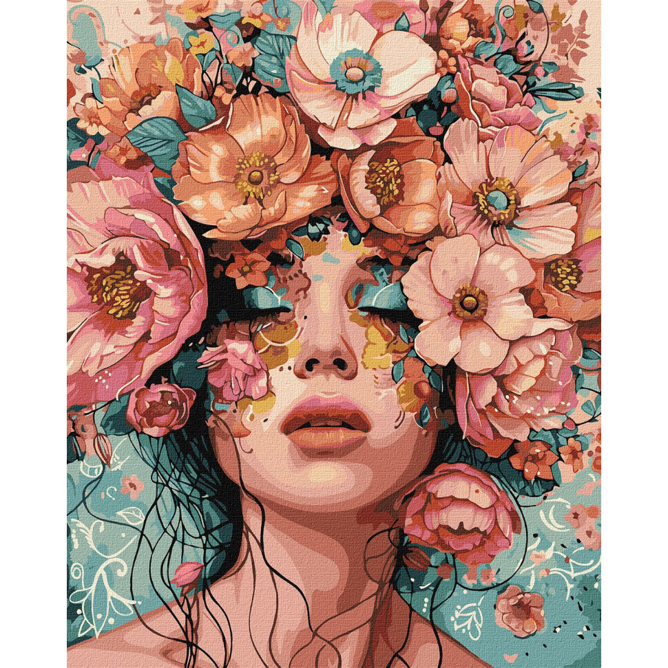 - натуральное полотно на подрамнике с галерейной натяжкой. На картине нанесена схема контуров изображения с нумерацией