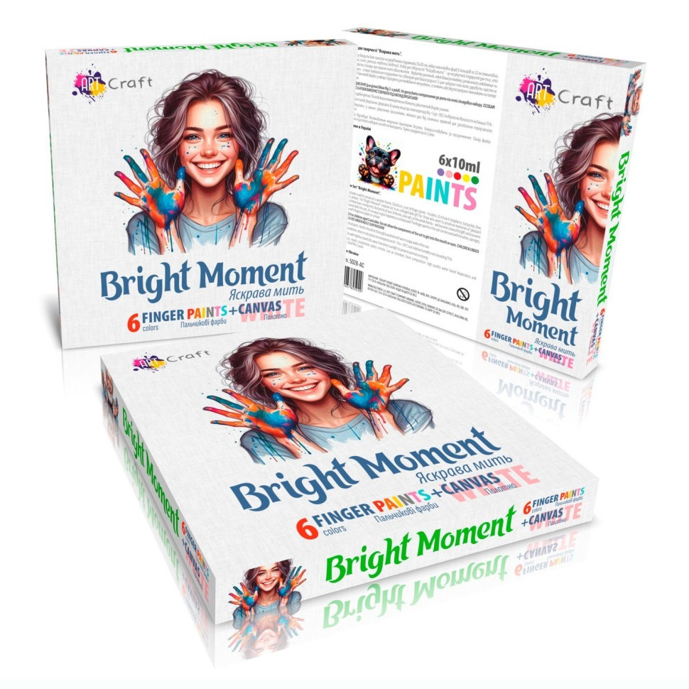 Набор для творчества "Яркое мгновение". В набор входит белое полотно на деревянном подрамнике 25х30 см, набор пальчиковых красок 6 цветов по 10 мл (малиновый, бирюзовый, синий, зеленый, красный, желтый). Набор для творчества "Яркое мгновение" - это незабываемый подарок для тех, кто хочет сохранить воспоминания о приятных мгновениях своей жизни. Отпечатки ладошек, ножек Вашего малыша, домашнего питомца или всей семьи – станет прекрасным подарком и сувениром для Вашей семьи! С этим набором так легко дарить счастье в память! Пальчиковые краски из набора подходят для рисования кисточками, спонжами или непосредственно пальчиками на бумаге или холсте. ПРЕДУПРЕЖДЕНИЕ! Для детей от 3-х лет. Не допускать попадания в рот и глаза составляющих набора. ЛИЦАМ ВОЗРАСТ ДО 14 ЛЕТ ИСПОЛЬЗОВАТЬ ПОД НАДЗОРОМ РОДИТЕЛЕЙ! Содержит мелкие детали. После использования тщательно вымыть руки теплой водой с мылом. Особенности условий хранения: хранить в сухом месте при температуре от +5 до +30 С и относительной влажности не более 75%. Краски хранить с плотно закрытыми крышечками, как можно дальше от солнечных лучей для предотвращения преждевременного высыхания. Продукция отвечает установленным медицинским критериям безопасности. Использовать по назначению. Состав краски: высококачественные дисперсии на водной основе и колоранты. Срок годности 2 года Сделано в Украине