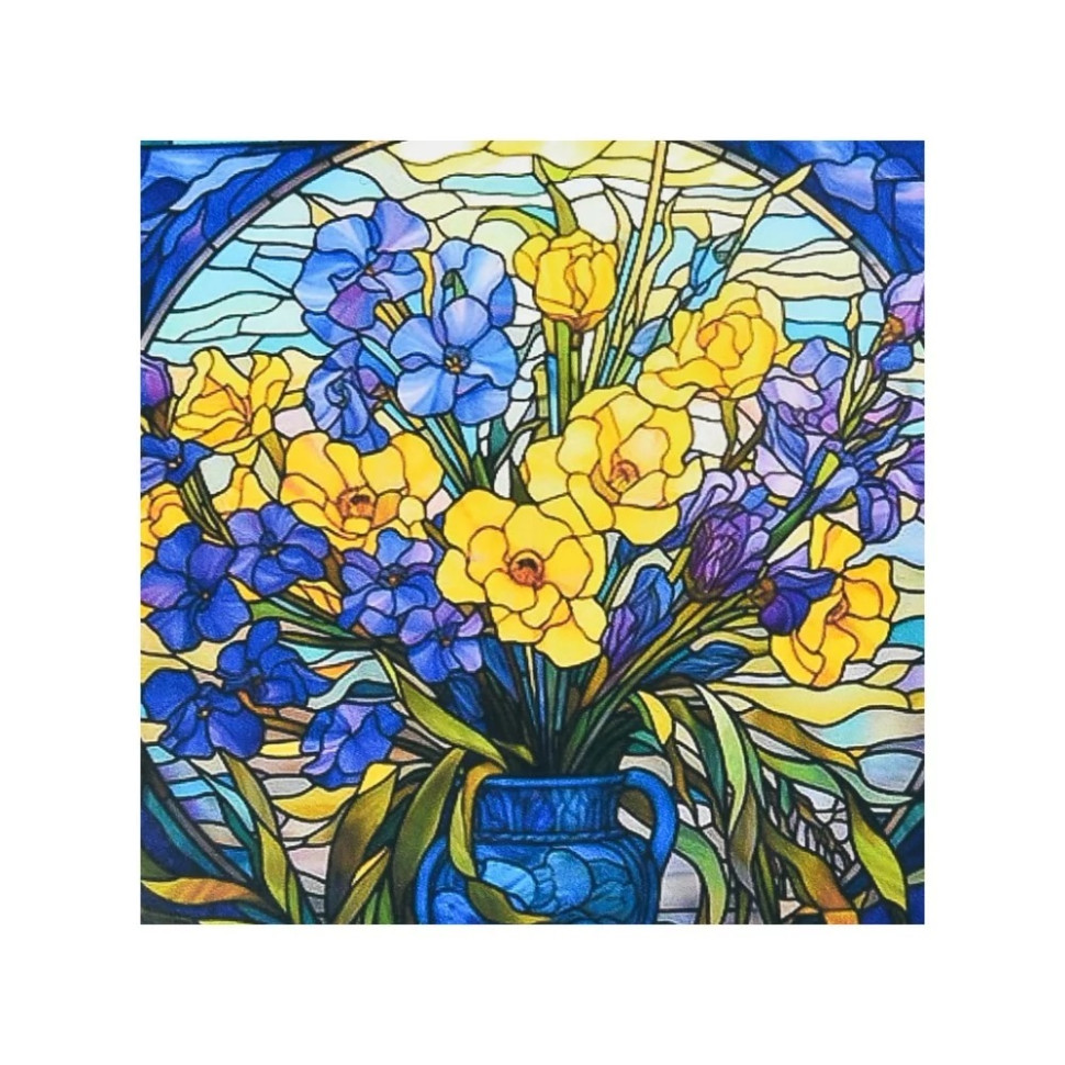 Алмазная мозаика "Витражные цветы" DEEX16280 неполная выкладка 30х30 см