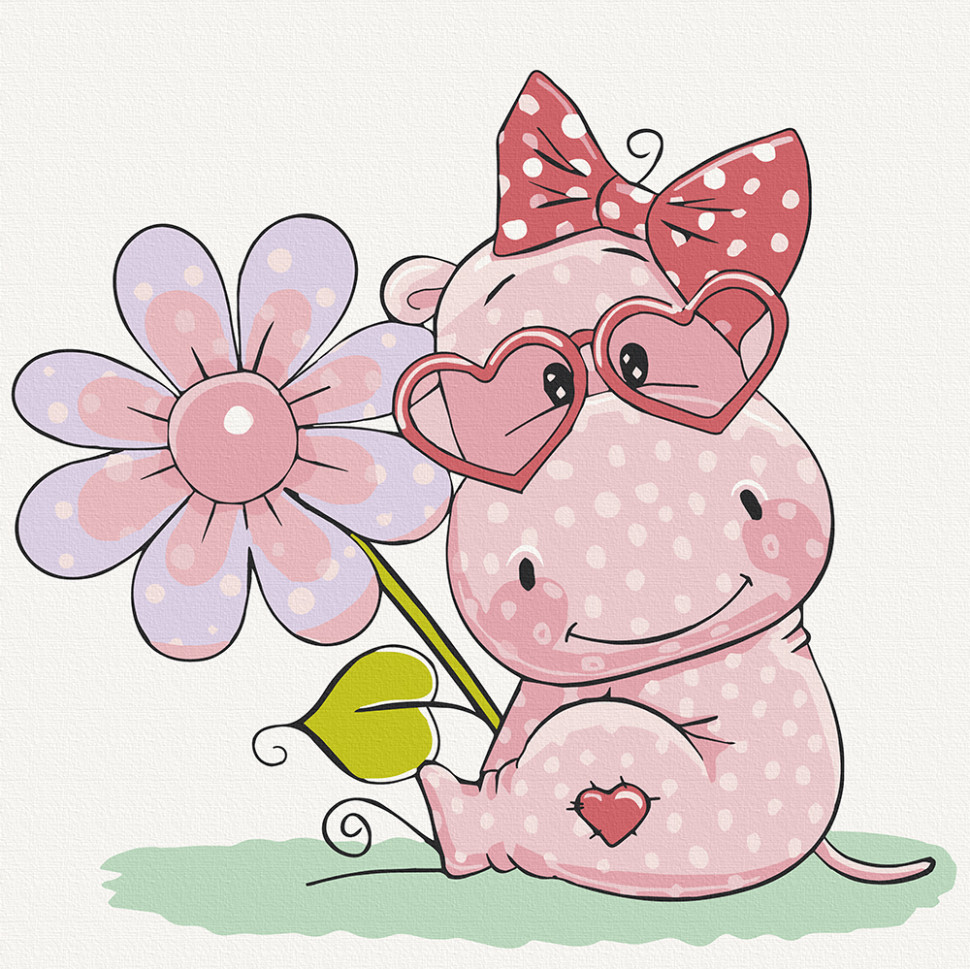 Картина по номерам. Art Craft "Бегемотик с цветком" 30х30 см 15539-AC