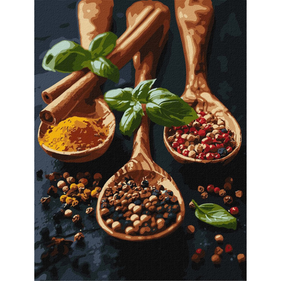 - Натуральный холст на подрамнике с галерейной натяжкой. На картине нанесена схема контуров изображения с нумерацией