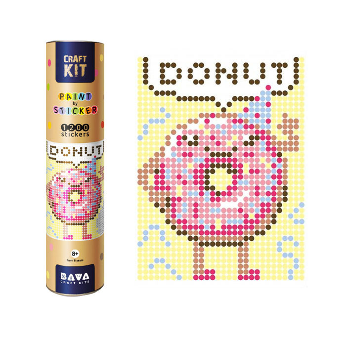 Создай картину своими руками без красок! Картина по номерам стикерами это новинка на нашем рынке! Приклеивай круглые стикеры и получишь пиксельную картину, которая идеально будет смотреться в интерьере Состав набора: • основа из плотного мелованной бумаги 33х48см, • наклейки-стикеры 1200 шт. • коробка-тубус 8х35см Для детей от 8 лет.
