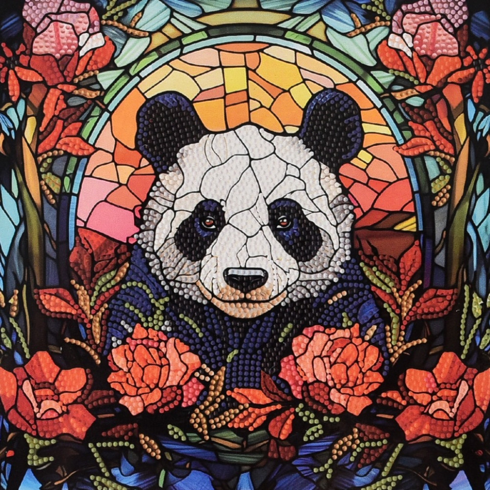 Алмазная мозаика "Панда среди роз" DEEX16305 неполная выкладка 30х30 см