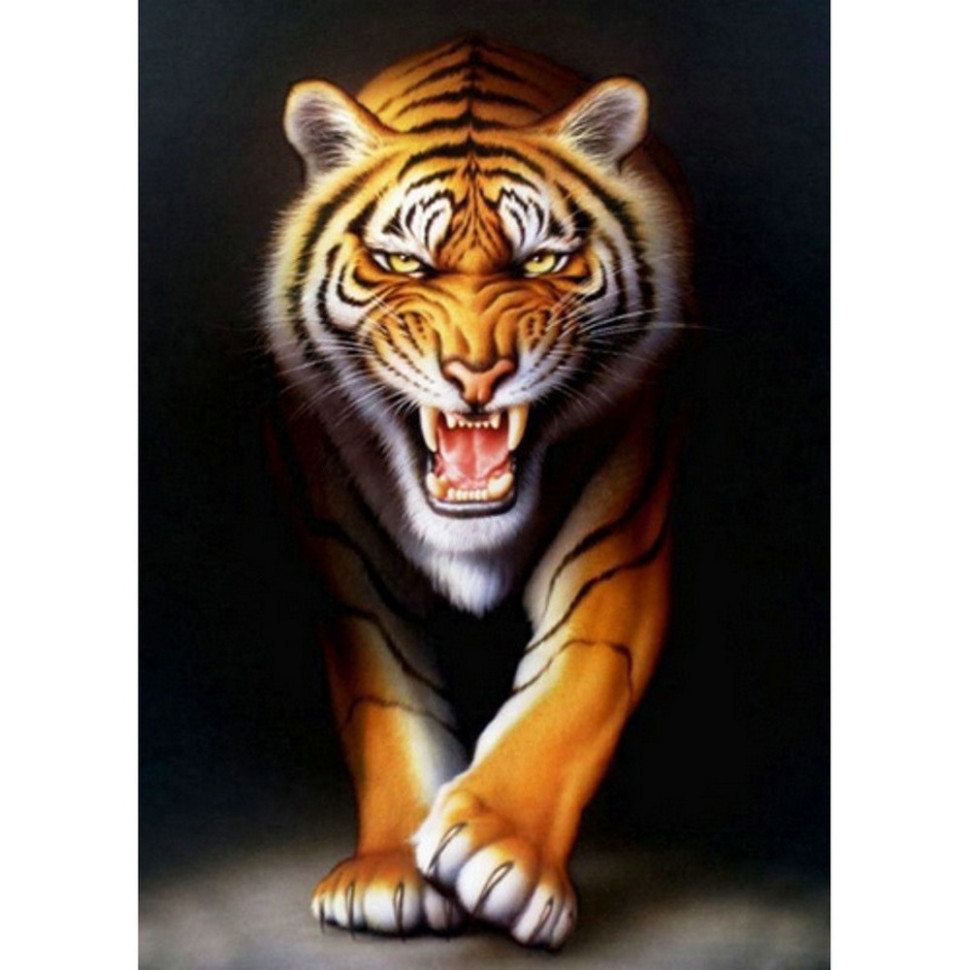 Алмазная мозаика "Тигр на черном фоне" JSDF70999 без подрамника 30х40 см