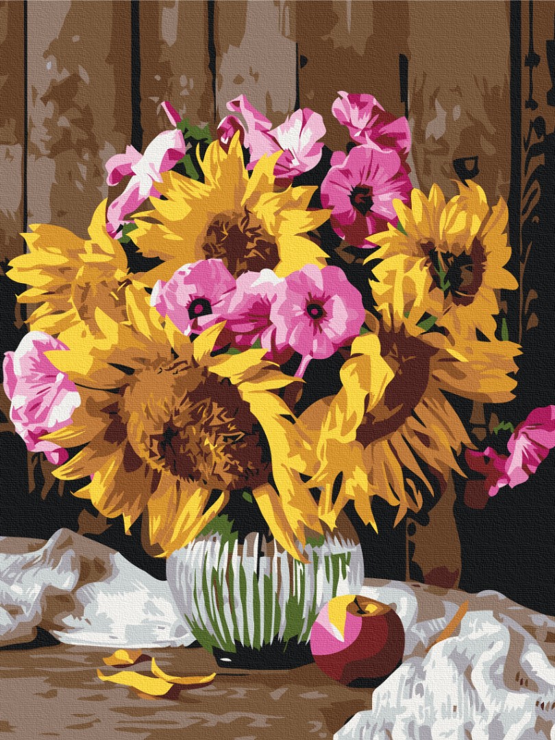 бавовняне полотно на дерев'яному підрамнику з нанесеною пронумерованою схемою майбутньої картини