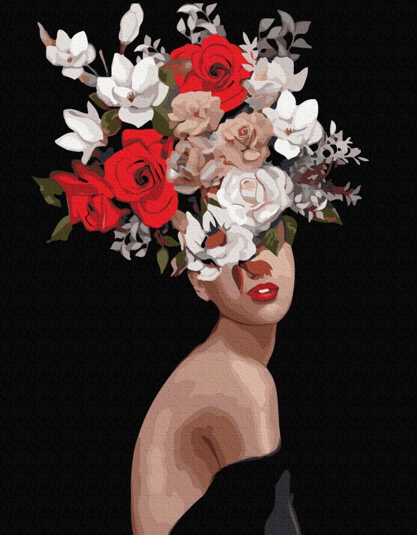 бполотно на лляній основі та дерев'яному підрамнику з нанесеною пронумерованою схемою майбутньої картини. Всі сегменти додатково пофарбовані в тон кольорів, якими буде зафарбовувати полотно