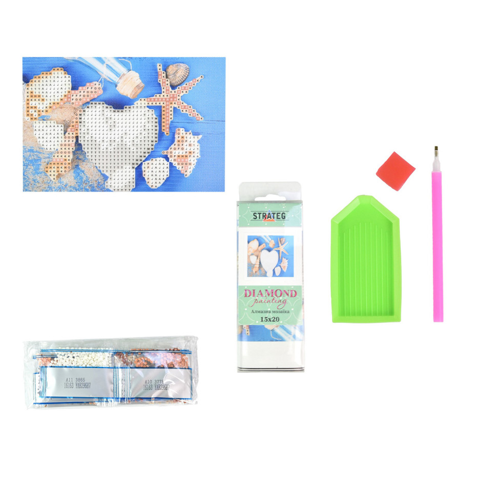 Алмазная мозаика Strateg ПРЕМИУМ Райские подводные сокровища без подрамника размером 10х15 см (YAB24667) Алмазная мозаика – это новый вид аппликации. Специальные бусины нужно приклеивать стилусом на холст. Так вы сможете создать блестящий шедевр – картину, выложенную блестящими камнями.В наборе есть все необходимые инструменты: хлопковое полотно с клеевым слоем; круглые камни-стразы; специальный стилус; липкая масса для стилуса; лоток для удобной сортировки камней; Если вы ищете оригинальный подарок – набор алмазной вышивки от производителя Strateg именно то, что нужно! Обратите внимание, цвет может отличаться от того, что на фото, поскольку фото обрабатывается перед публикацией. Размер картины: 10х15 Сложность картины: 2 Звезды (Ниже Среднего)