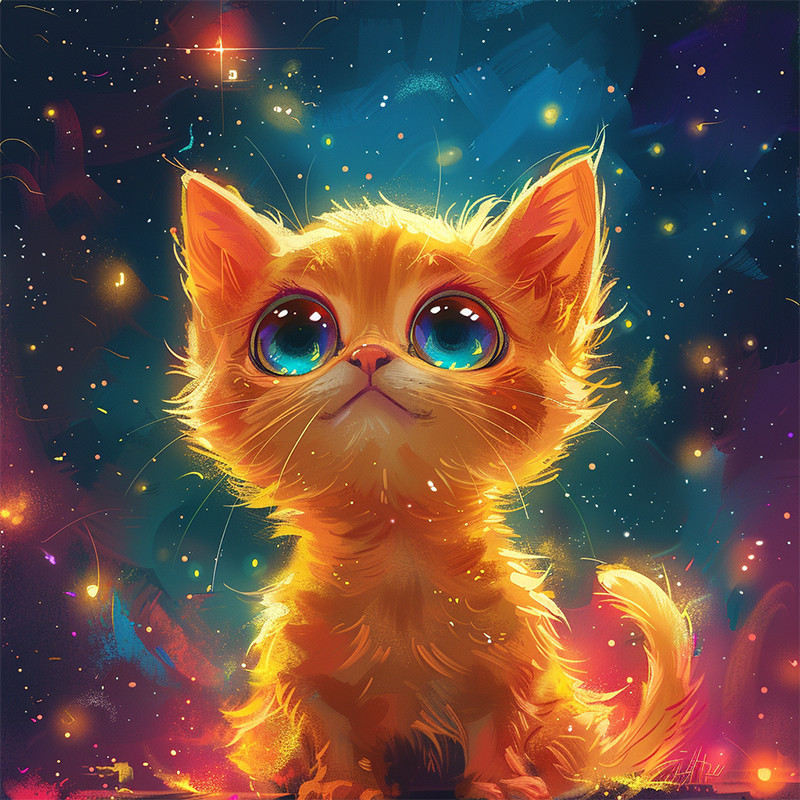 Алмазная мозаика "Голубоглазый котенок" BH009 неполная выкладка 25х25 см