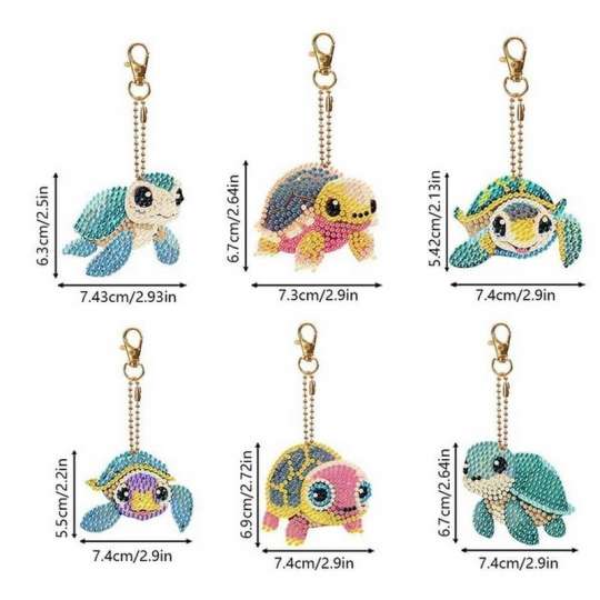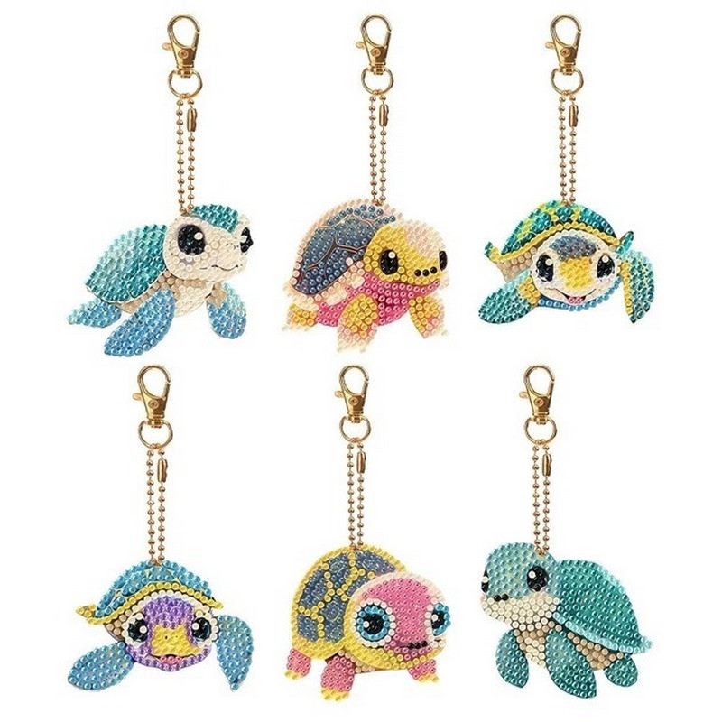 Набор брелков для алмазной мозаики "Черепашки" BR37 с инструментами 6 шт
