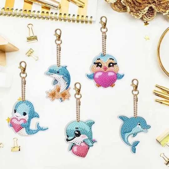 Набор брелков для алмазной мозаики "Дельфины" BR35 с инструментами 5 шт