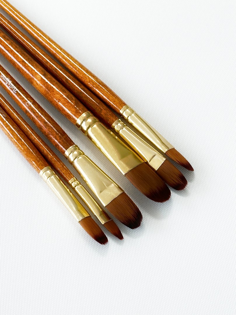 Набір професійних нейлонових пензликів 6 шт. (коричневі з позолотою, форма FILBERT)