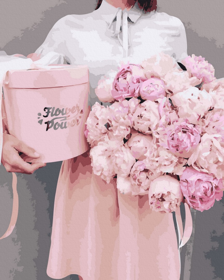 бполотно на лляній основі та дерев'яному підрамнику з нанесеною пронумерованою схемою майбутньої картини. Всі сегменти додатково пофарбовані в тон кольорів, якими буде зафарбовувати полотно