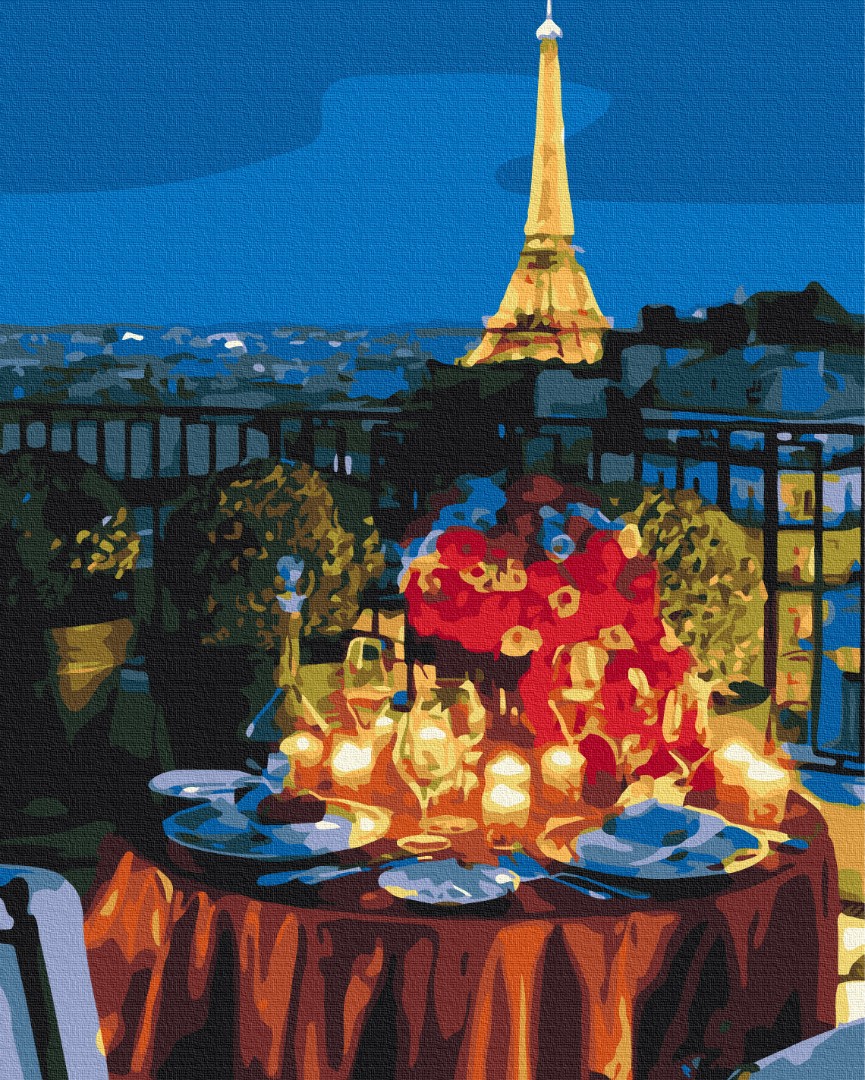 бполотно на лляній основі та дерев'яному підрамнику з нанесеною пронумерованою схемою майбутньої картини. Всі сегменти додатково пофарбовані в тон кольорів, якими буде зафарбовувати полотно