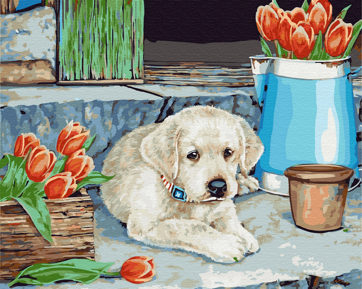 бавовняне полотно на дерев'яному підрамнику з нанесеною пронумерованою схемою майбутньої картини