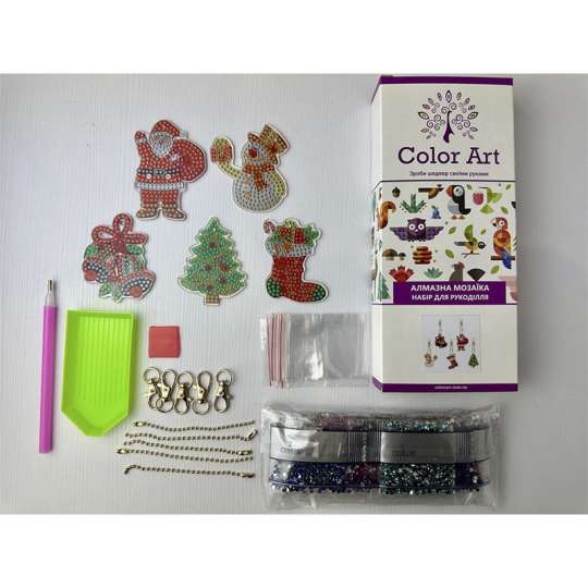 Набор брелоков для алмазной мозаики – это яркая новинка в мире рукоделия! Блестящие, цветные и стильные аксессуары, созданные собственноручно, станут отличным украшением для сумочки, рюкзака или ключей. А еще – это отличный вариант подарка для близких, друзей или коллег. В комплект входит: основы для брелоков, которые выкладываются камешками с обеих сторон; набор цветных стразов в пронумерованных пакетиках; инструменты для удобной работы; цепочки с карабинами для подвешивания готовых брелоков. Создайте с воодушевлением и добавляйте блеска в свой день!